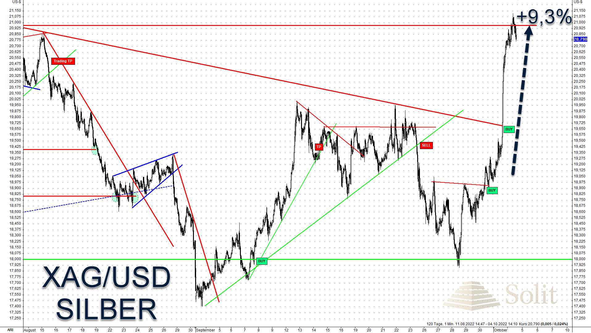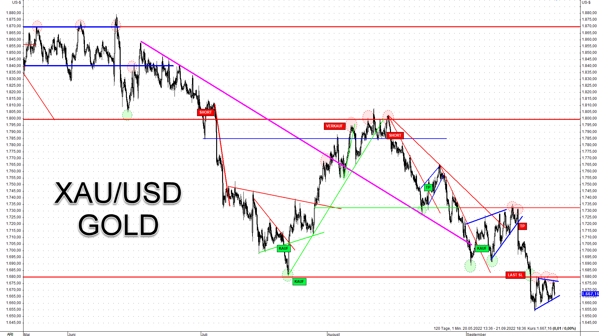 Der Goldpreis stieg am heutigen Vormittag kurzzeitig um 15$ an, nachdem Russland eine Teilmobilmachung angekündigt hatte.