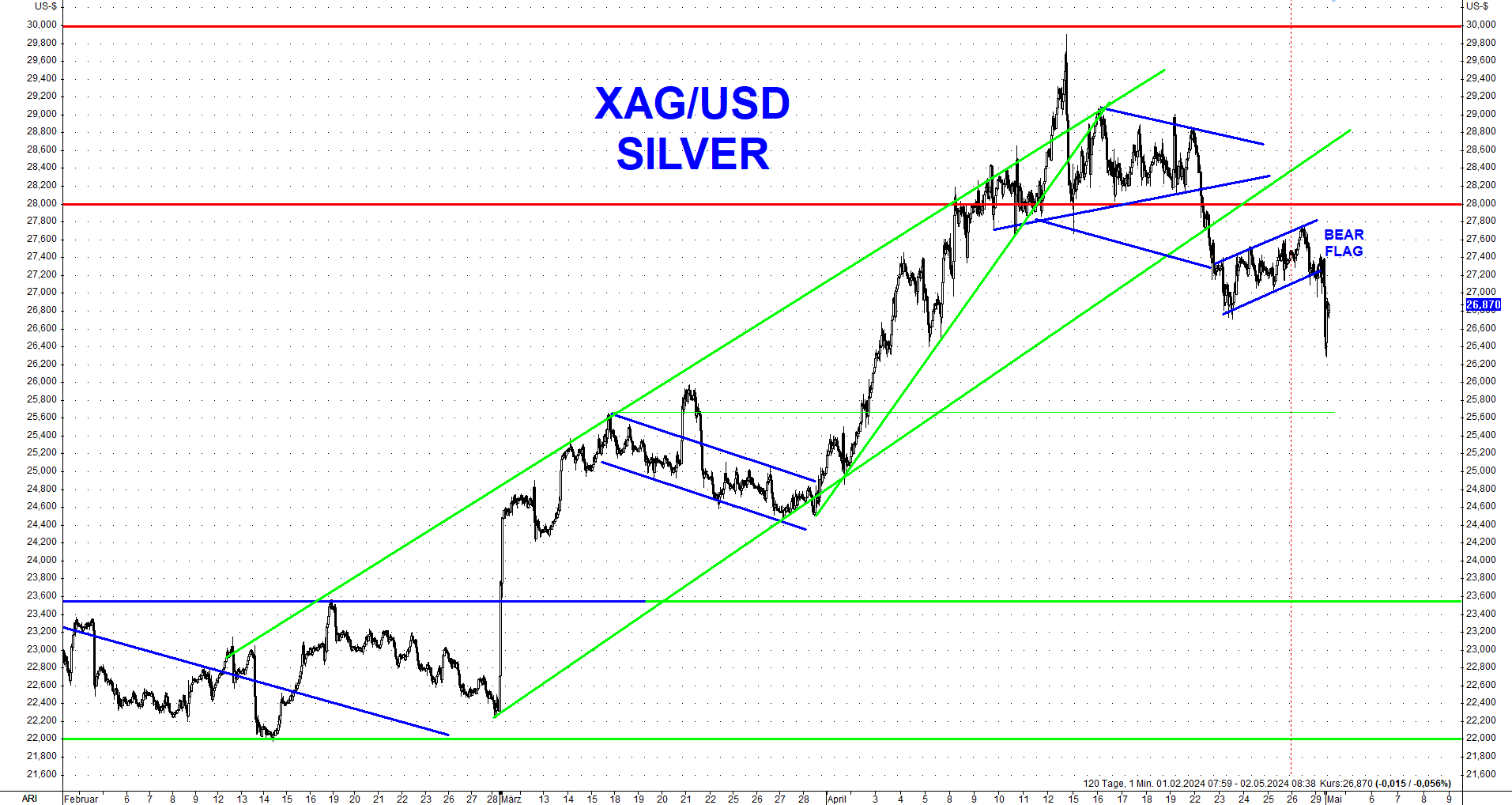 Wir sahen am Montag den stärksten eintägigen Preisrückgang am Goldmarkt seit über einem Jahr und mittlerweile wurde die Unterstützung bei 2.300$ erreicht und getestet.