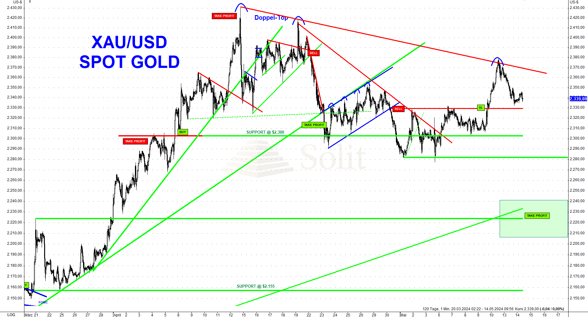 Der Goldpreis fiel in der vergangenen Handelswoche auf die Unterstützung bei 2.300$, wo die Goldbullen wieder als Käufer auftraten.