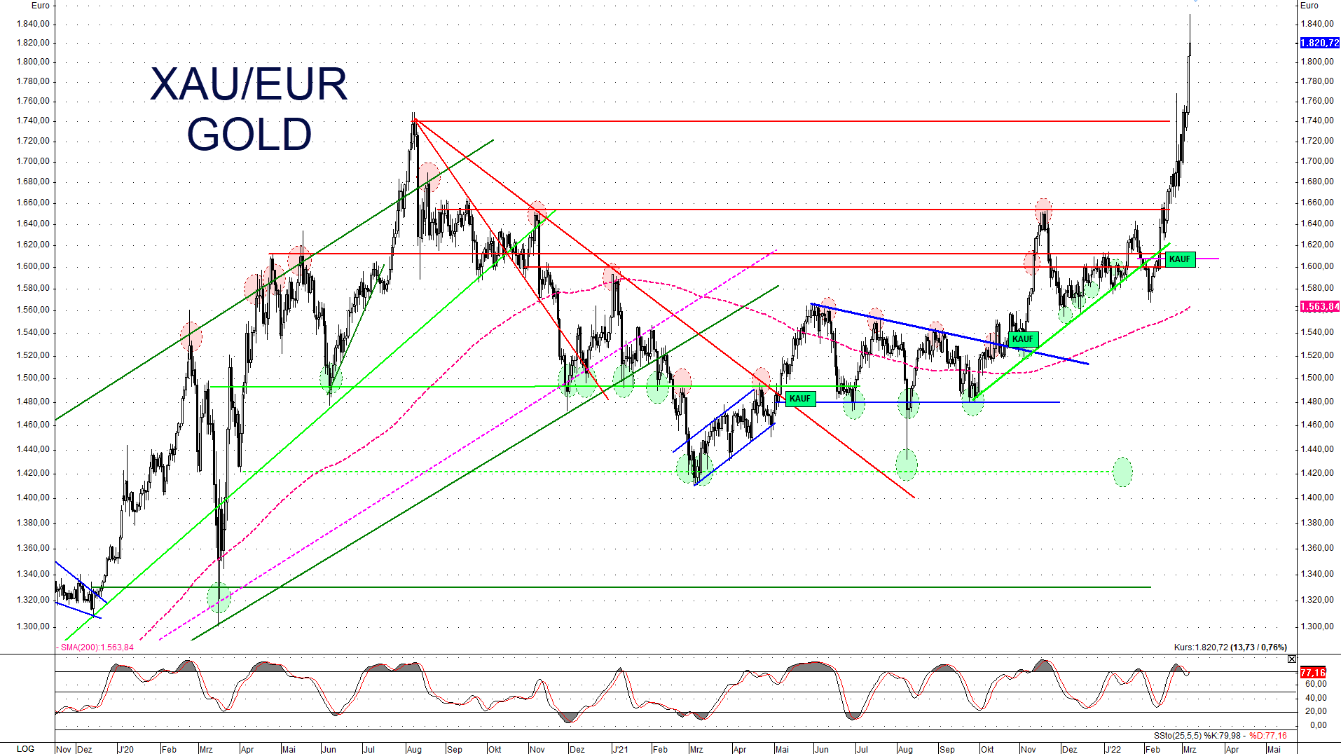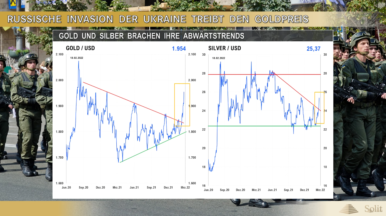 Die Kriegsangst wird weiterhin geschürt und Gold stieg heute bis an den nächsten Widerstand bei 1.900 US-Dollar an. Silber konnte jedoch nicht mitziehen. Dies und mehr in der neuen Ausgabe von Trendwende.