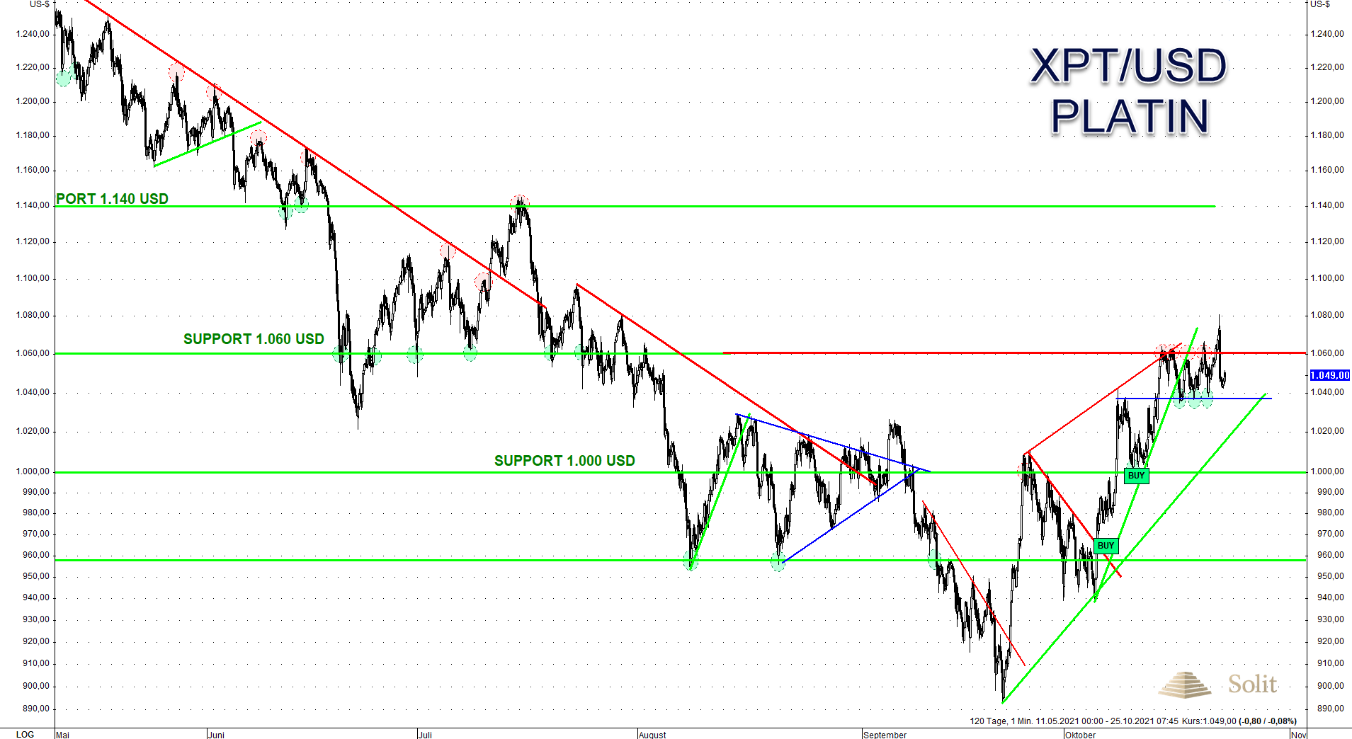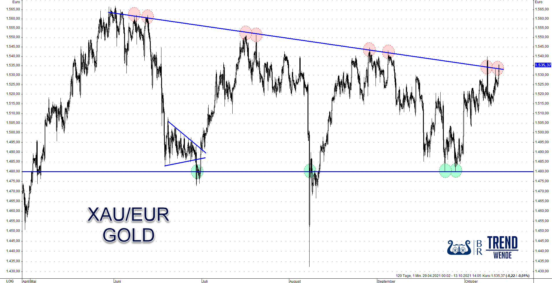 Der Goldpreis in US-Dollar durchlebt heute wieder eine Achterbahnfahrt und ist kurz davor das wichtige Hoch bei 1.780 US-Dollar rauszunehmen und damit ein Kaufsignal zu liefern.
