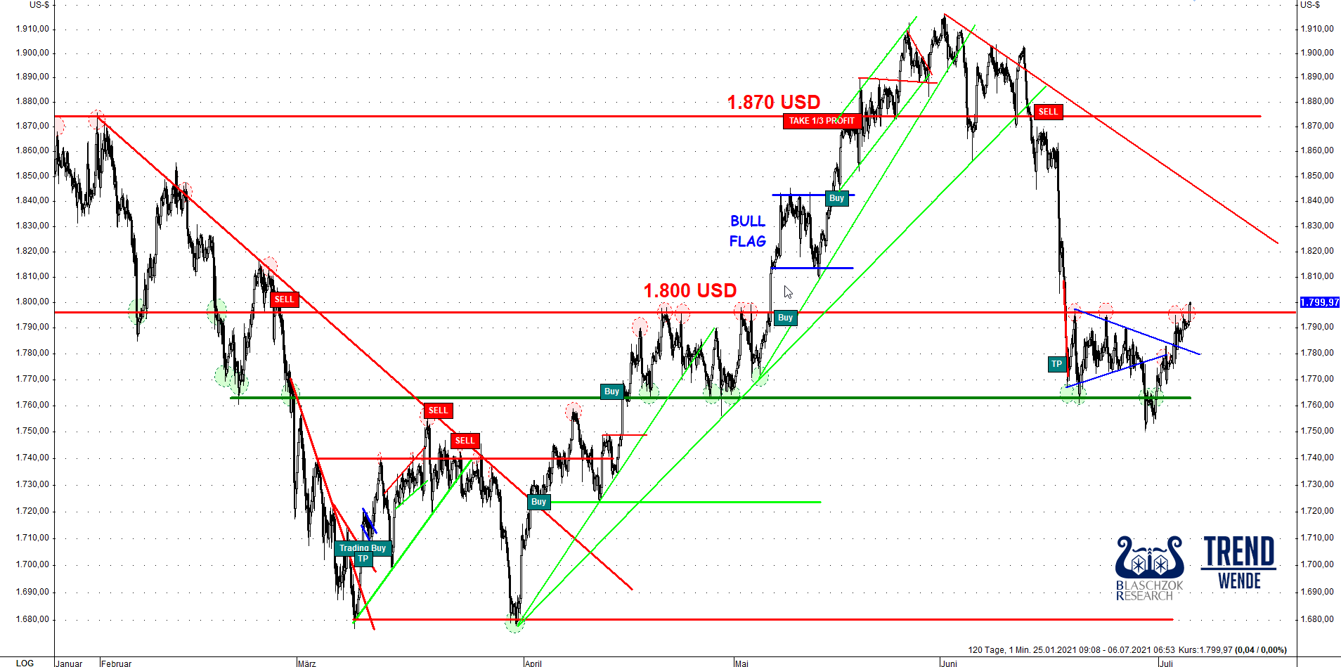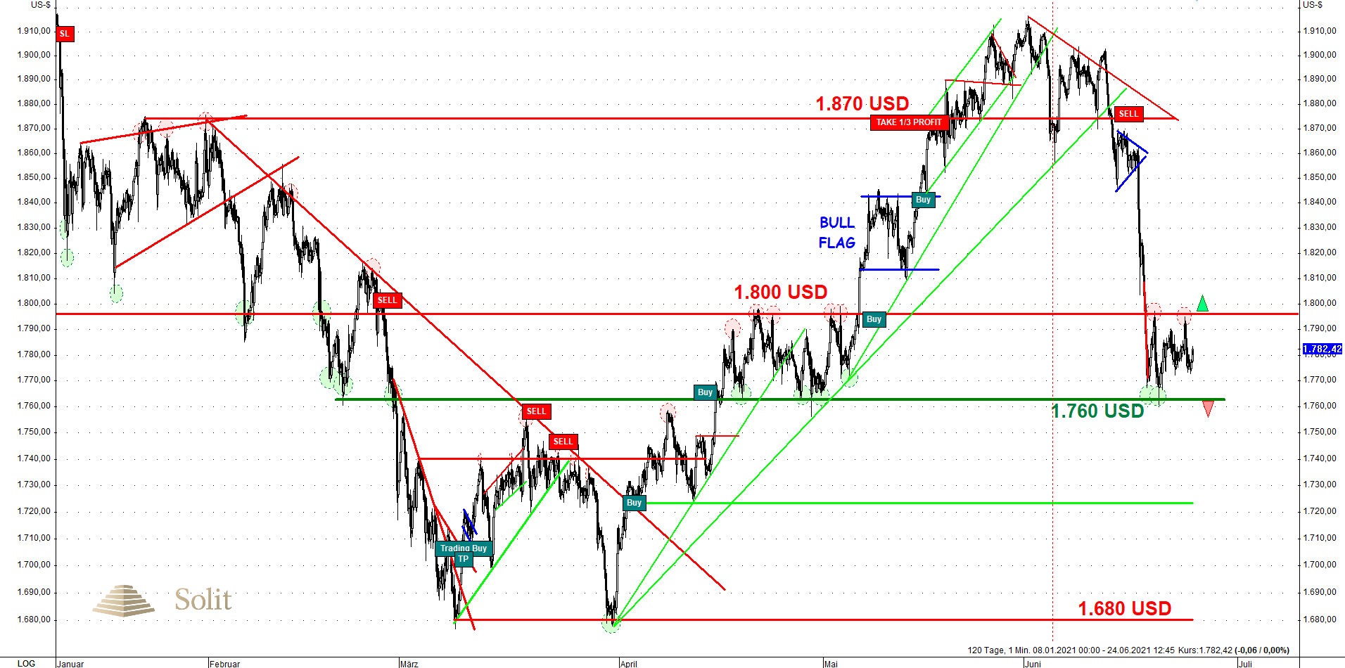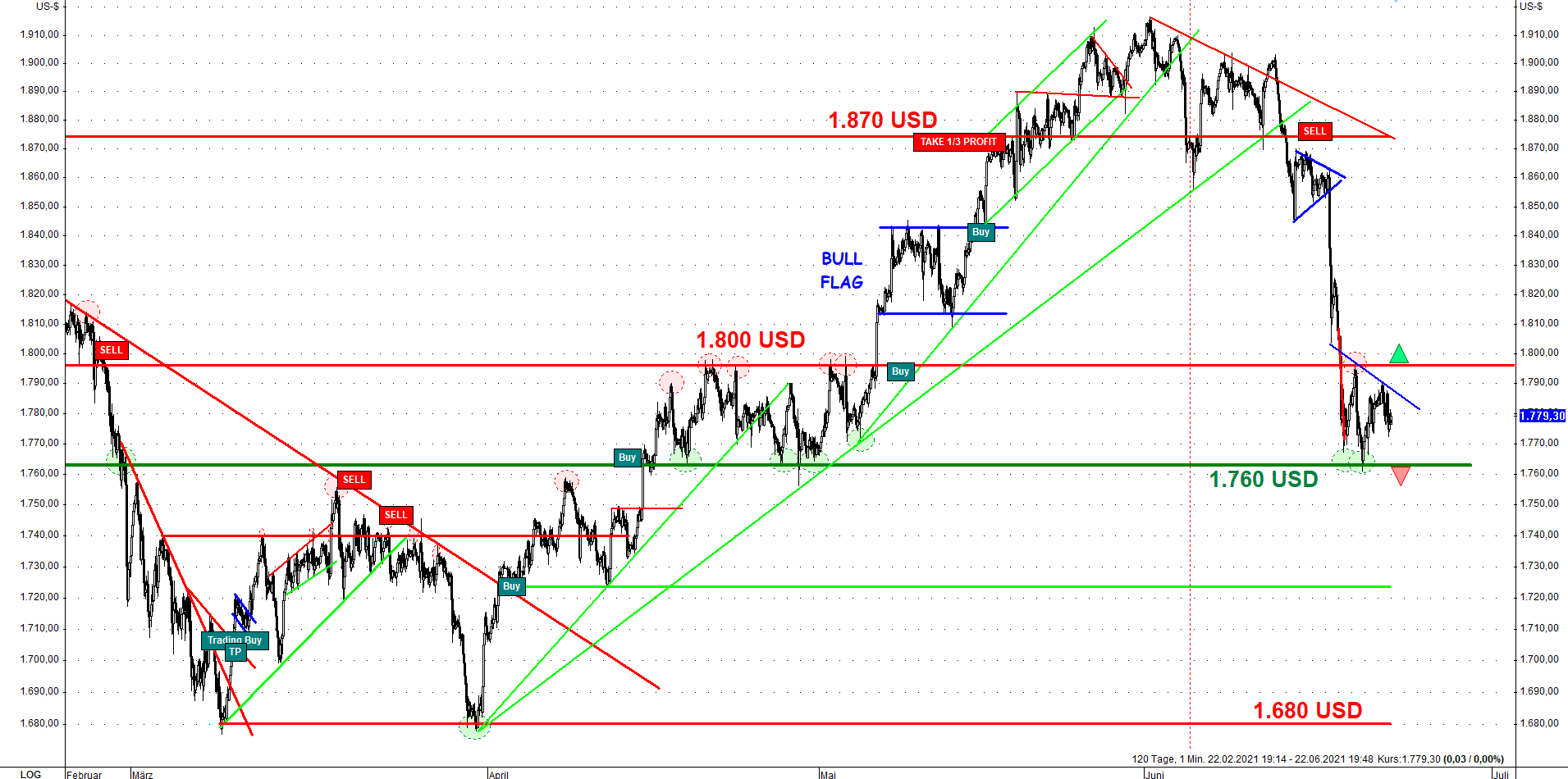 Der Goldpreis brach gestern am Abend nach dem Zinsentscheid der US-Notenbank um 60 US-Dollar auf 1.804 US-Dollar ein. Das Volumen des Ankaufprogramms bleibt unverändert, doch erwarten die FED-Mitglieder für 2023 nun mindestens zwei Zinsanhebungen...