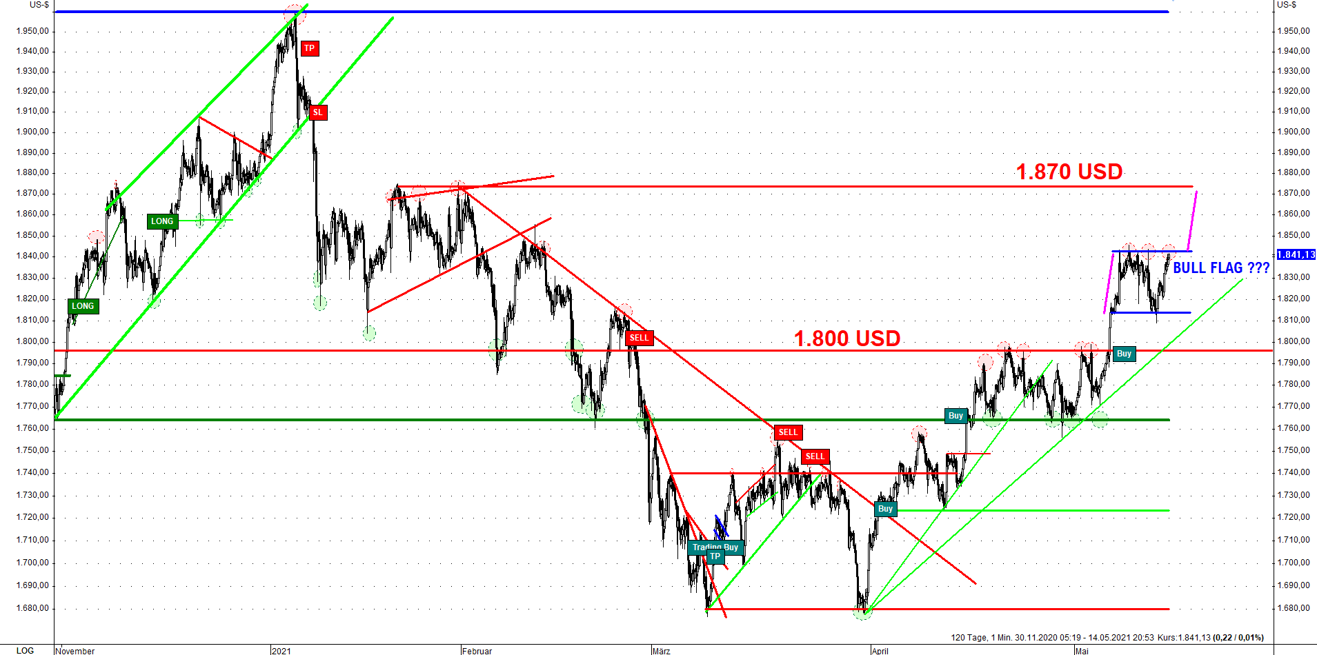 Sollte der Goldpreis die potenzielle Bullenflagge nach oben auflösen, würde Silber auf 28$ ansteigen. Selbst Preise darüber wären denkbar.