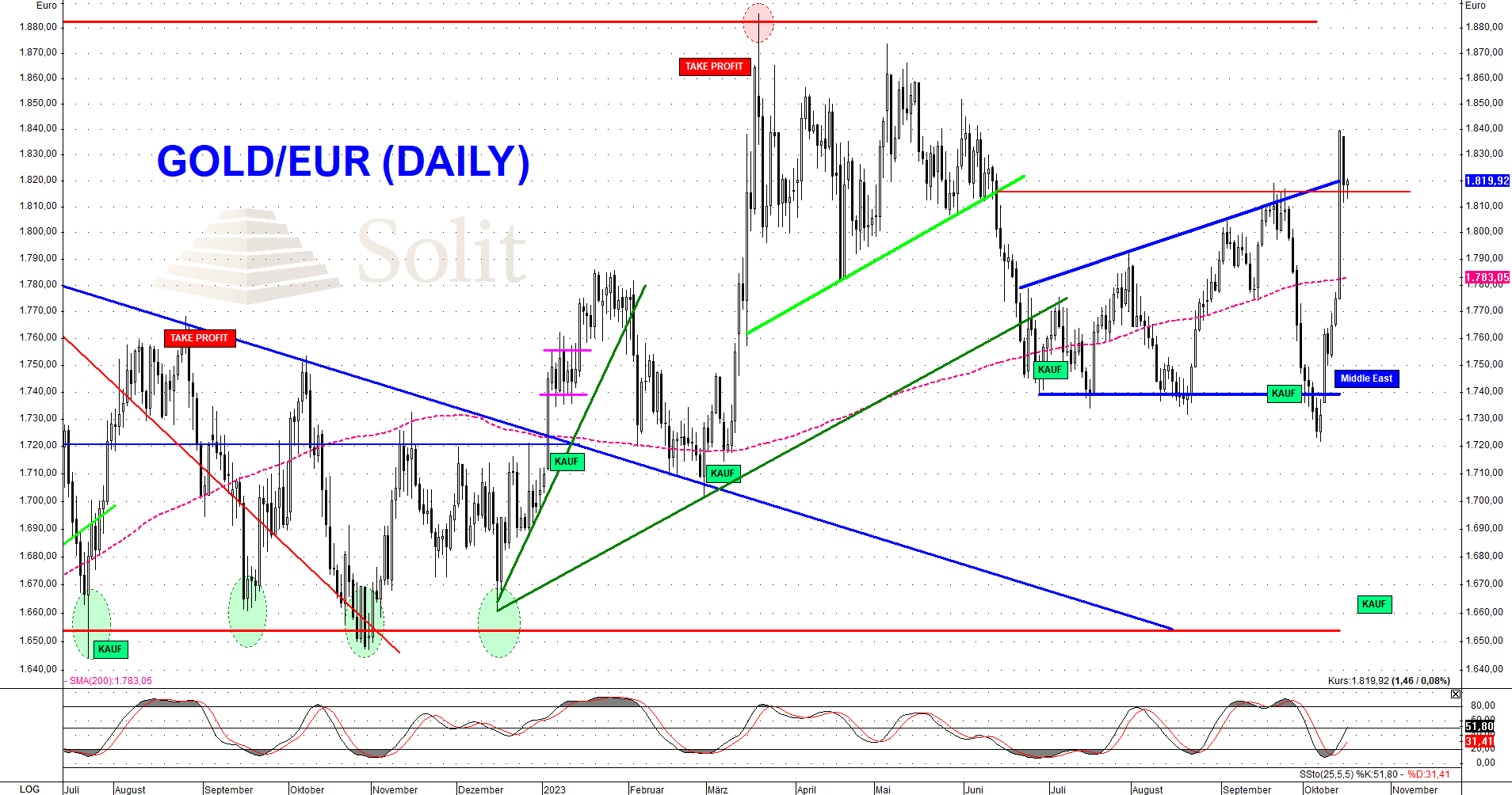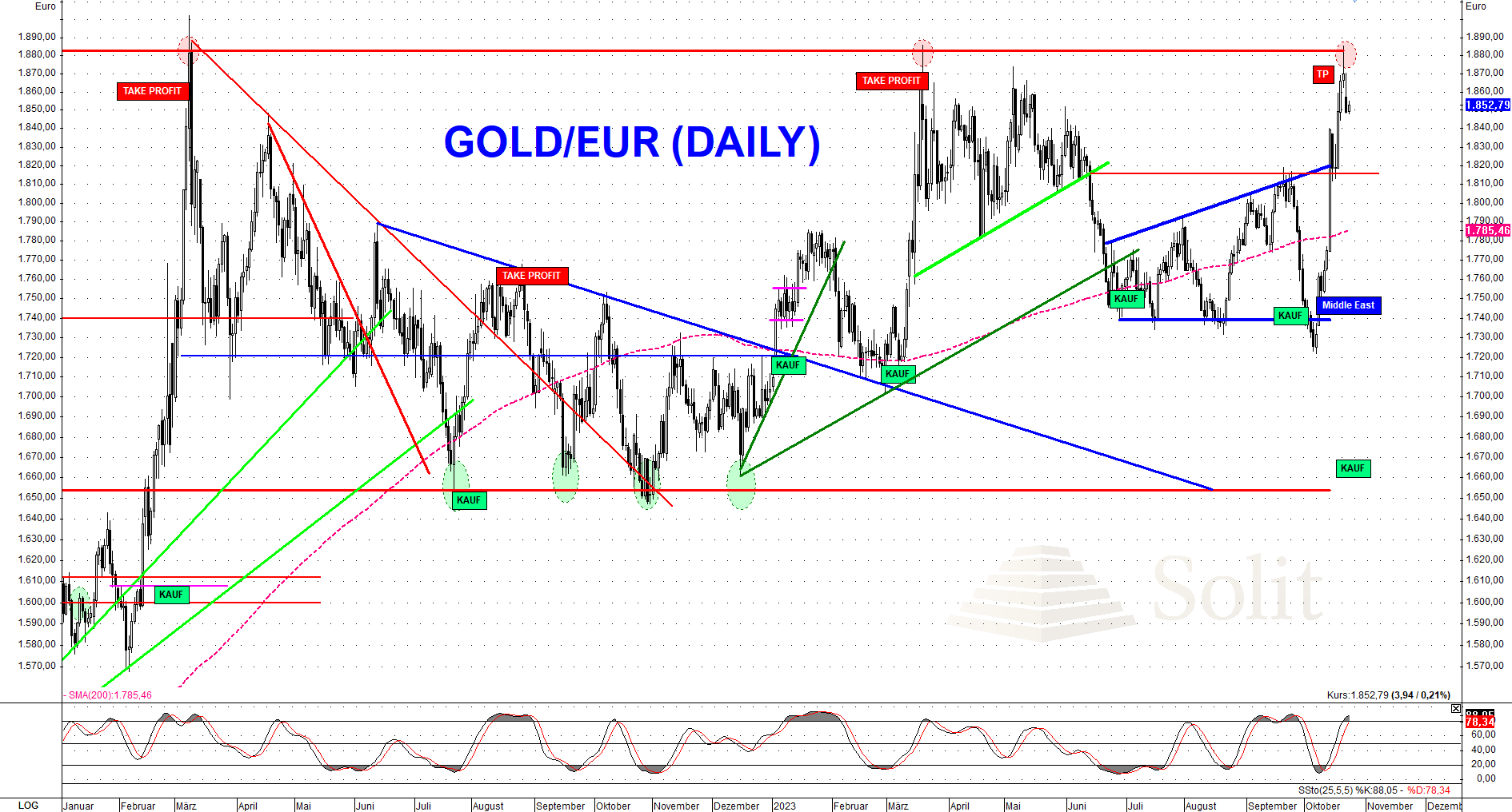 Die Flucht in den sicheren Hafen des Goldes setzte sich auch in der letzten Woche fort. Als Reaktion auf den Krieg im Nahen Osten stieg der Goldpreis binnen zwei Wochen um mehr als 180$ (+10%) an...
